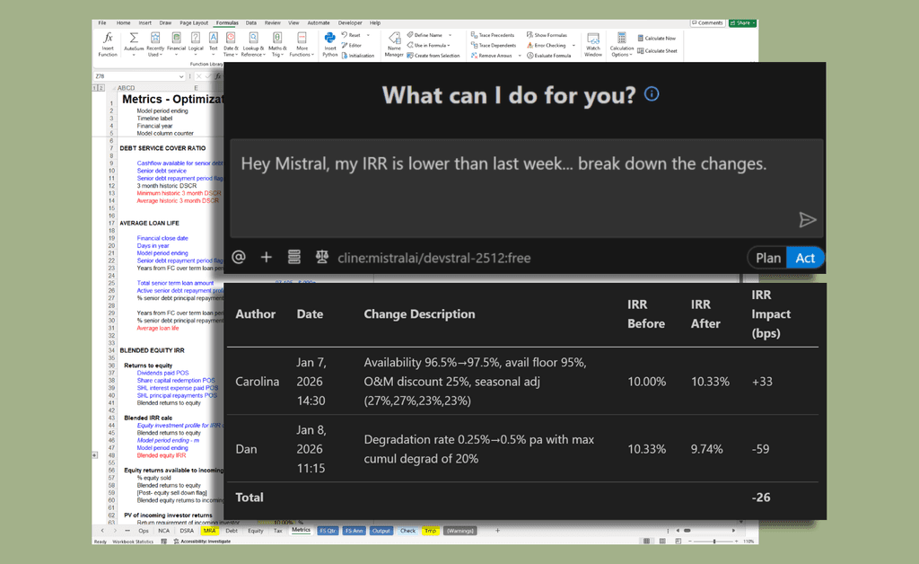 "There is a worldwide shortage of reliable, high-quality project finance modelling capability. AI can close that gap, but only if it meets the consistency, standards, and governance our industry demands.